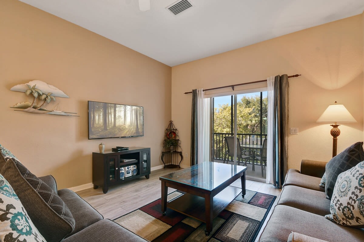 Welcome to our upgraded condo at Bahama Bay! This second-floor unit offers a cozy balcony, perfect for unwinding after a thrilling day at the parks.
