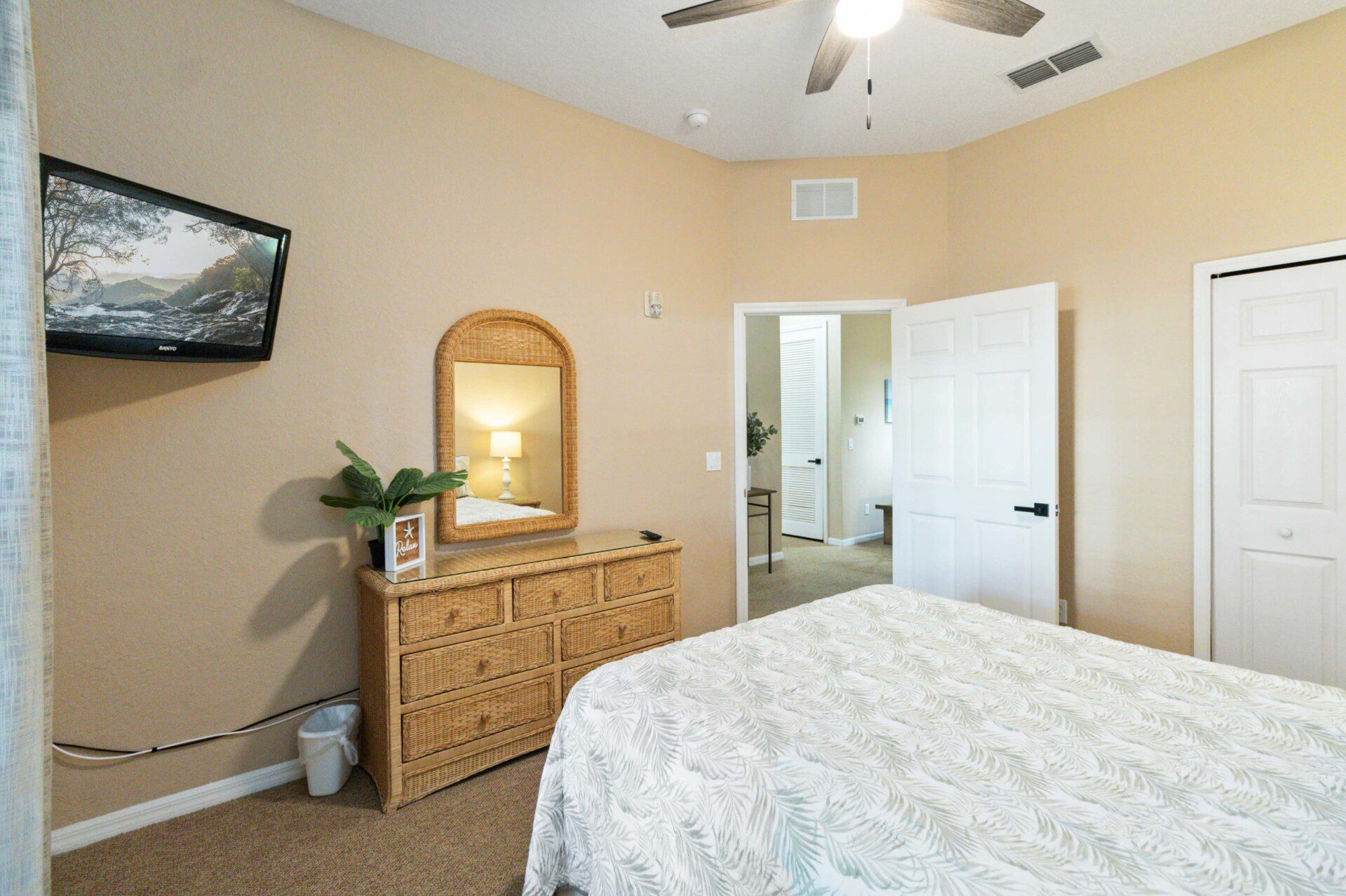 Experience comfort and convenience in our recently renovated first-floor unit. The master bedroom features a king-size bed and an attached bathroom with a bathtub. The second room offers a queen bed, while the third room provides two twin beds, sharing a full bathroom. Each room is equipped with a TV for your entertainment.